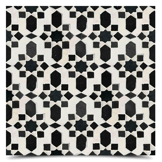 Baraka is a cultural and traditional mosaic tile that symbolizes the timeless beauty of Morocco. Its white and black colors create a modern and classy look. Its intricate framework will establish any room in your home. Baraka illustrates style.