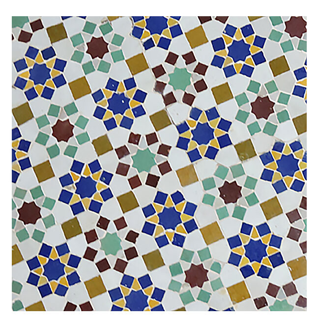 Dyafa is a vibrant and complex mosaic tile that embodies Moroccan tradition and culture. Its white, yellow, blue, green and red colors offer a creative and festive energy. Its compelling pattern will flourish in any room. When paired with the right colors, Dyafa will attract diverse culture and style to your home.