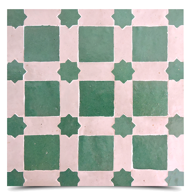 Etoile is a traditional and classic mosaic tile that represents Moorish style. Its white and green colors adds a cultural and verdant vibe. Its simple, yet intriguing pattern will complete your home. Etoile will allure guests to your home and add just the right touch of tradition and elegance.