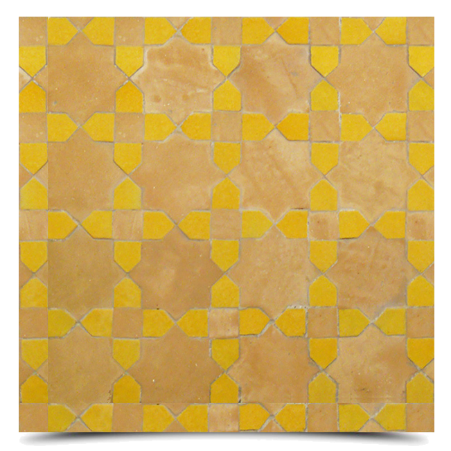 Tanaya is mosaic pattern featuring rows of stars and moorish crosses. Its brown and mustard colors create an earthy and conventional look. Its temple of beauty will complement any room. Tanaya will add a rustic feeling to your home.