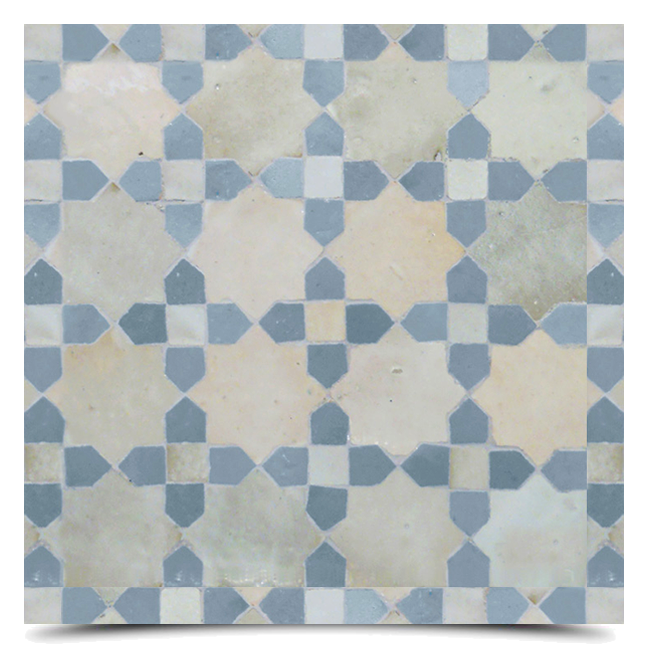 Tanaya is mosaic pattern featuring subtle rows of stars and moorish crosses. Its grey blue and earth tone colors create a beautiful serene look. Its temple of beauty will complement any room. Tanaya will add a rustic feeling to your home.