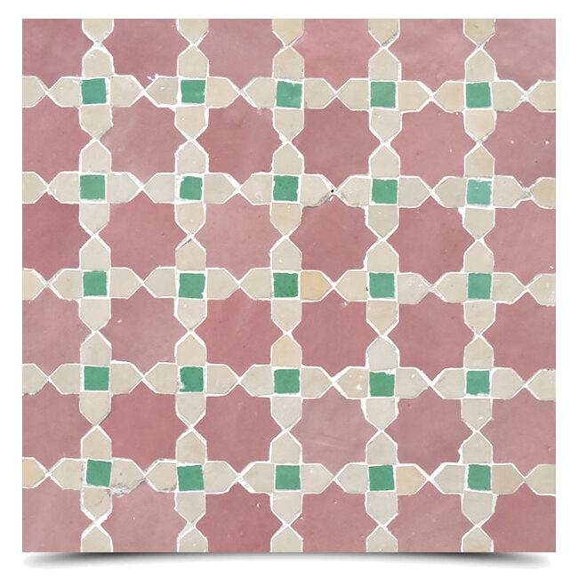 Tanaya is mosaic pattern featuring rows of stars and moorish crosses. Its pink, grey and green colors create a very unique and soothing look. Its temple of beauty will complement any room. Tanaya will add a rustic feeling to your home.